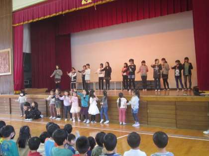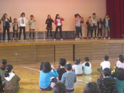 昼休みにダンスクラブが発表をしました。見ていた子供たちも一緒に踊って盛り上がっていました。