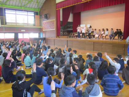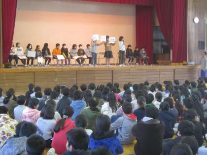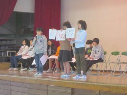今朝は、飼育栽培委員会の全校集会でした。動物の鳴き声をあてるクイズを楽しんでいました。