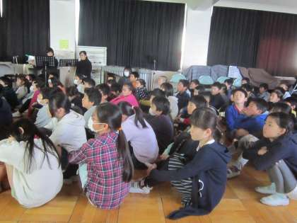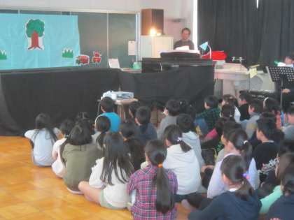 4年読書活動「お話レストランスペシャル」 読み聞かせボランティアの方々が4年生に音楽やペープサートを使って、スペシャルな読み聞かせをしてくださいました。1時間、子供たちもしっかりお話を聴いていました。ありがとうございました。