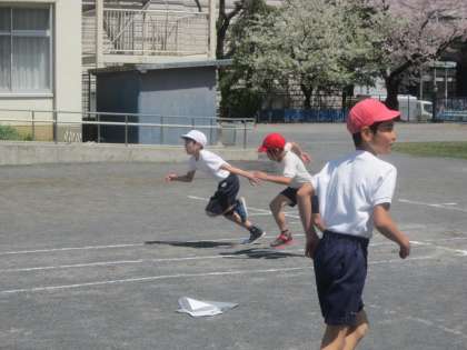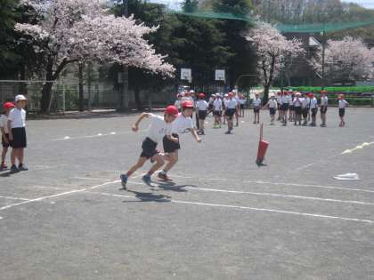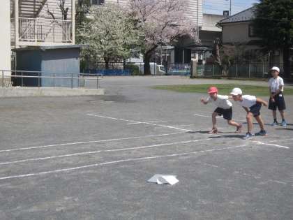 5年体育科「陸上運動」 ヨーイ・ドン、短距離走の計測をしていました。