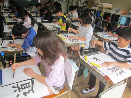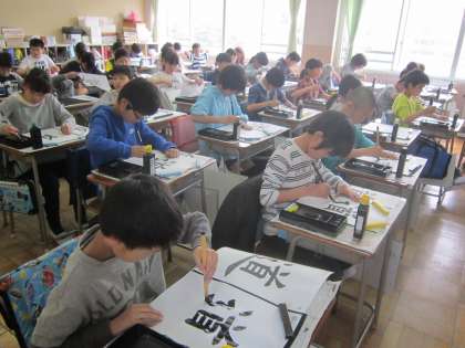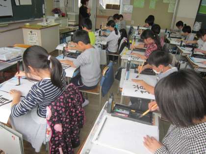 5年国語科「書写」 書写の授業のオリエンテーションをしてから、『道』という字を練習しました。組み立てに気を付けて、丁寧に練習していました。