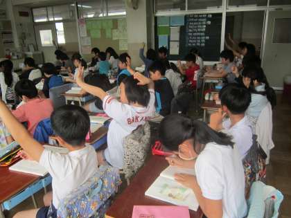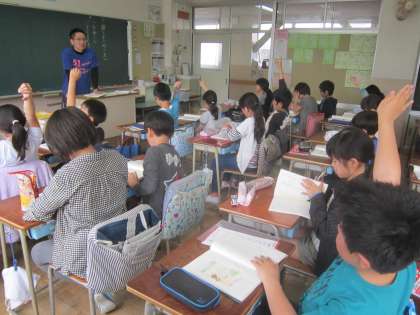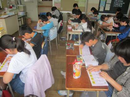 5年国語科「なまえつけてよ」 物語を読んで、場面ごとに分けたり新出漢字の練習をしたりしました。『興』など画数の多い漢字も、丁寧に練習していました。