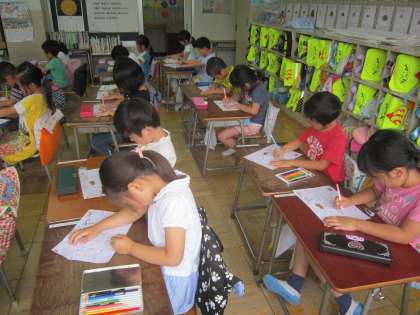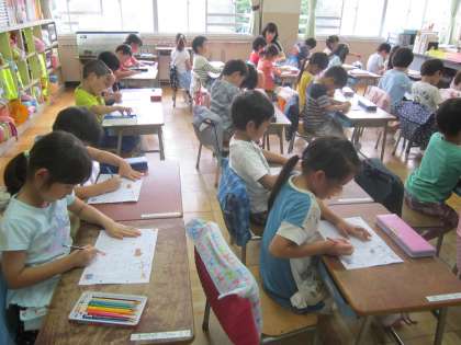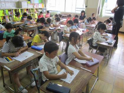 1年国語科「ひらがな」 『や』の書き方と使い方について学習し、丁寧に練習していました。