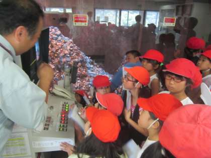 4年生が、北野清掃工場に見学に行きました。DVDで清掃工場のことを学習し、工場内を見学し、ごみ収集体験や足湯にも入りました。清掃工場の皆さんありがとうございました。
