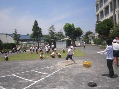 1〜6年生まで、全校で体力テスト・ソフトボール投げの計測をしました。上級生も下級生も、ボールを力いっぱい投げていました。