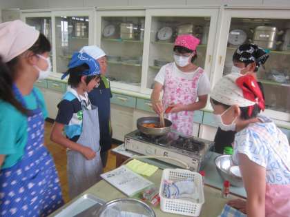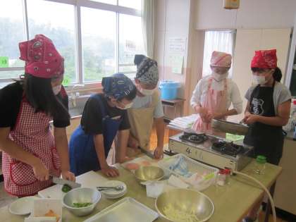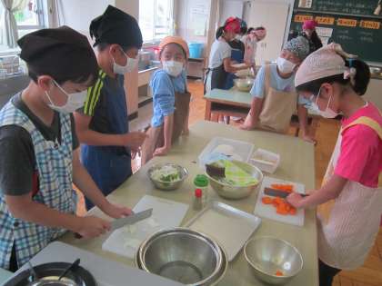 6年家庭科「いろどりいため」 いろどりを考えた野菜炒めの調理実習です。包丁の使い方や火の調節のしかたが上手になりました。