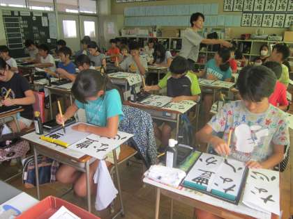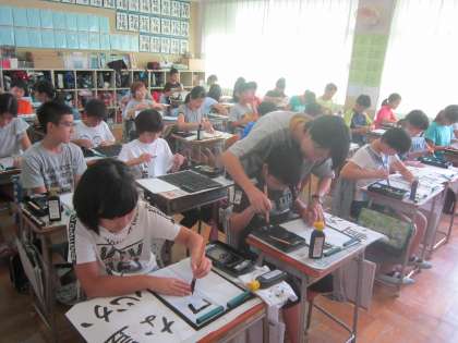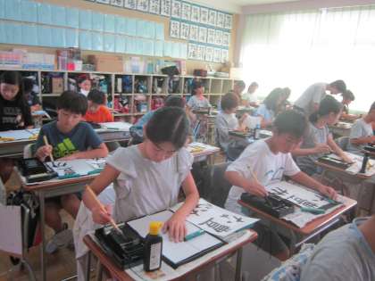 6年国語科「書写」 『豊かな心』字形を考えて、筆先を上手に使って、丁寧に練習していました。