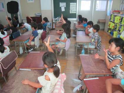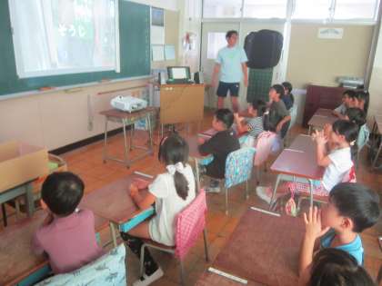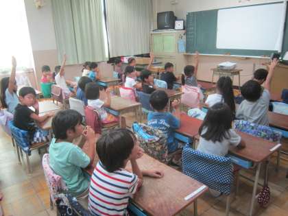 1年学級活動「そうじ」 VTRを見ながら、掃除の大切さややり方を学習して、自分たちの掃除の仕方を見直しました。