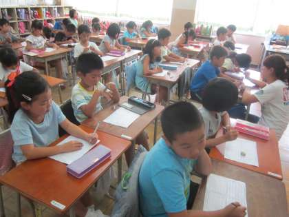 2年生活科「まちたんけん」 まちたんけんをして、見つけたこと、自分のこと、友達のこと、気付いたことなど、一人一人考えて、情報交換しました。