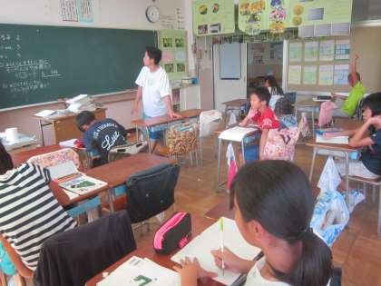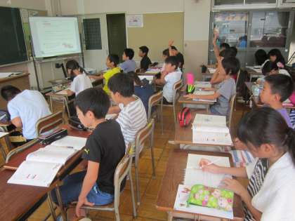 5年算数科「分数、小数、整数の関係」 2学級3展開習熟度別に授業です。何倍になるか?小数倍と分数倍の関係について学習していました。