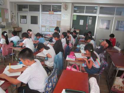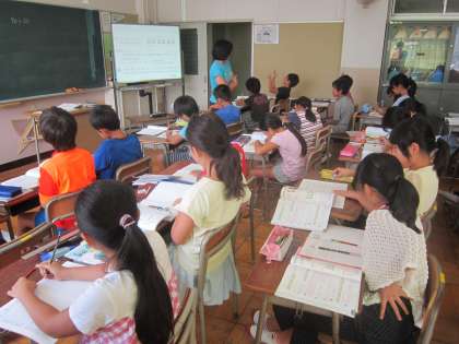4年算数科「わり算」 2学級3展開習熟度別の授業です。2けた÷2けたの計算の仕方を考え、練習していました。