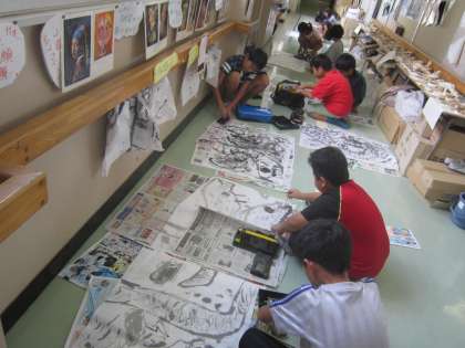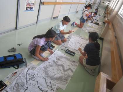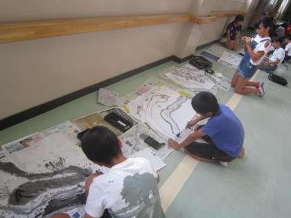 5年図画工作科「墨絵 心の中の龍」 自分で作った筆を使って、墨の濃淡を工夫して、個性のある龍が描かれています。