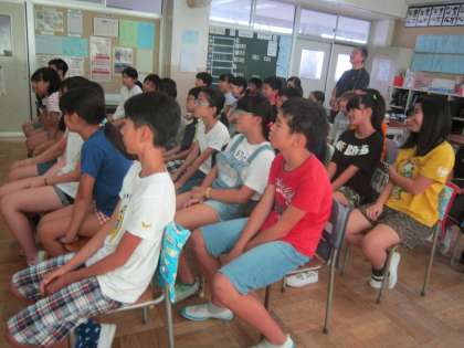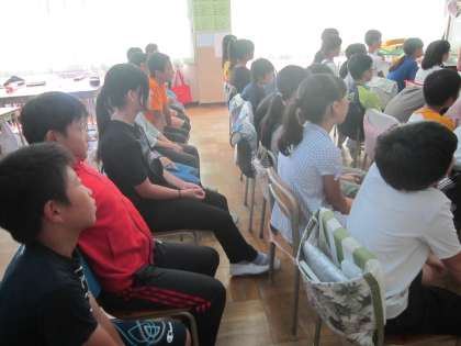 6年「美しい日本語の話し方教室」 劇団四季の劇団員の方々に出前授業をしていただきました。母音だけで話してから、子音を入れて話したり、連母音・長音・連子音の話し方を練習したり、きれいで正しい話し方をしっかり学習しました。ご指導ありがとうございました。