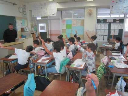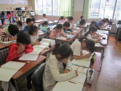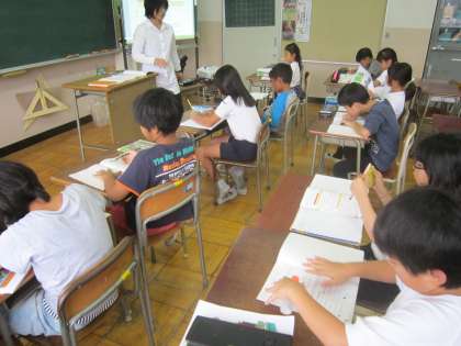 3年算数科「小数」 2学級3展開習熟度別の授業です。長さやかさなどの小数の表し方について、話し合いながら学習していました。