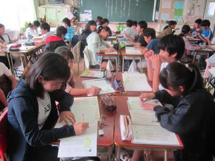 6年国語科「意見文を書こう」 『未来がよりよくあるために』という題で、意見文にするテーマを決めて、反論や反論に対する意見など、話し合っていました。