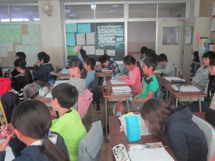 5年理科「流れる水のはたらき」 川の水の災害を防ぐために、どんな工夫をしているだろうか?考えたことを情報交換して、話し合っていました。