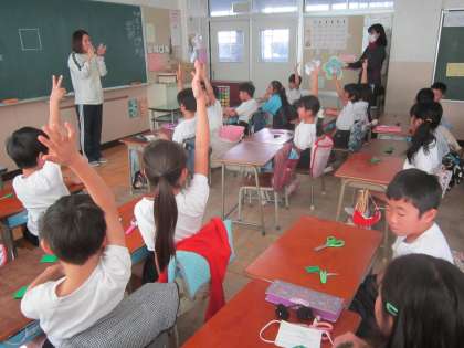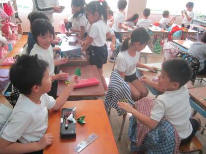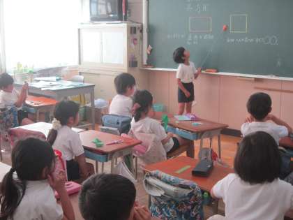 2年「長方形と正方形」 折り紙で直角を作ったり、切ったりしてできた四角形の特徴について調べ、長方形と正方形について学習していました。