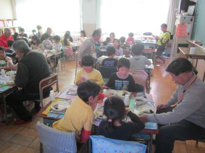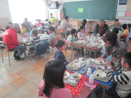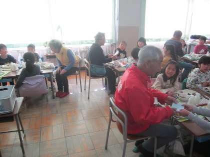 1年生は、普段お世話になっている学校安全ボランティアの方々と給食を食べて、交流会をしました。精一杯おもてなしして、一生懸命音楽の合唱と合奏をしました。学校安全ボランティアの皆様、お忙しい中ありがとうございました。