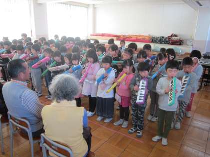 1年生は、普段お世話になっている学校安全ボランティアの方々と給食を食べて、交流会をしました。精一杯おもてなしして、一生懸命音楽の合唱と合奏をしました。学校安全ボランティアの皆様、お忙しい中ありがとうございました。