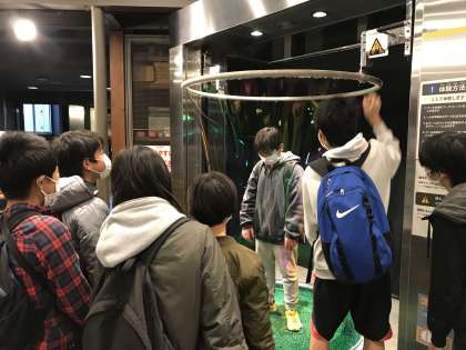 科学技術館に着きました。楽しく見学してます。