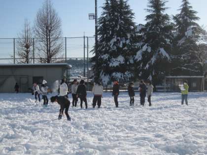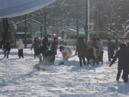 昨晩、東京は4年ぶりの大雪でした。早朝、校庭は真っ白に雪が積もって、朝の時間、元気に楽しく雪遊びをしました。登校の際に通学路の除雪をしてくださった地域・保護者の皆様ありがとうございました。