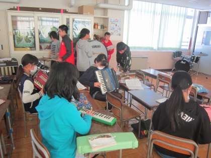 6年音楽科「ルパン三世」 パートに分かれて一生懸命に合奏の練習をしていました。