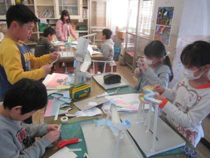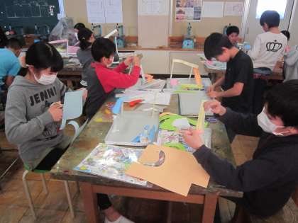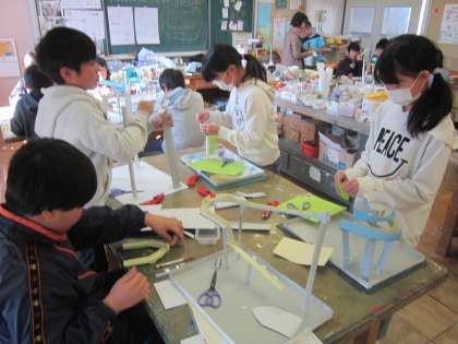5年図画工作科「ビー玉ジェットコースター」 いろいろ工夫したコースも完成に近づいてきました。