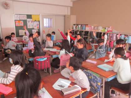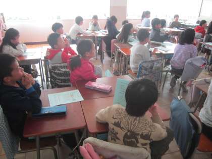2年生活科「電車にのろう」 映像をみながら、切符を買ったり、入場してホームを見つけたり、生活科見学の事前学習をしていました。