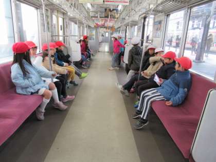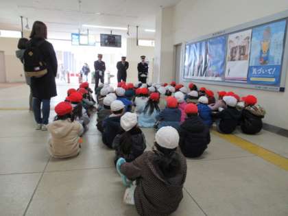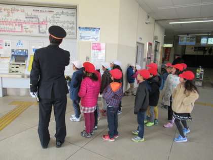 午前中の電車は、空いていました。長沼駅に着き、その後3グループに分かれて駅員さんからいろいろなお話を聞きました。