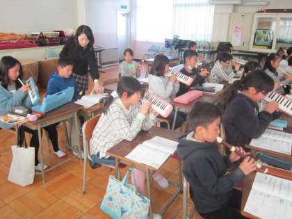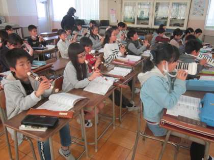 4年音楽科「ズンガリガリ・旅立ちの時」 リコーダーと鍵盤ハーモニカの合奏ときれいな歌声を聴かせてくれました。