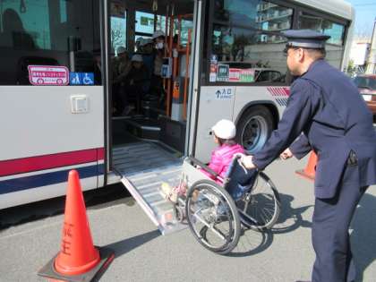 車イスの方をどのようにして乗車させるのか、バスの洗車なども実演してくださいました。
