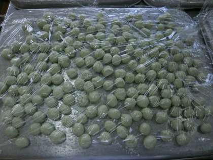 緑は、白玉粉、とうふ、桑の葉の粉を混ぜわせ作りました。