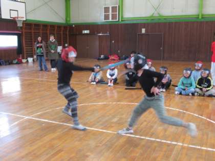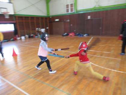今年度最後のサタデースクールを開催しました。スポーツチャンバラの先生をお招きして、ルール、約束、作法など、たくさん教えてくださいました。いろいろな試合も体験できて、子供たちは夢中になって取り組んでいました。サタデースクール運営委員の皆様、一年間ありがとうございました。