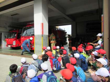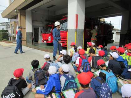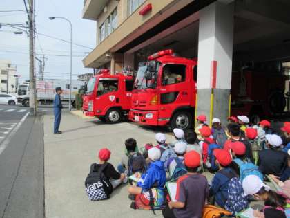 本日、八王子消防署北野出張所へ見学に行きました。そこでは、普段見ることのできない消防署内の見学や消防車の説明、防火着の体験までさせていただきました。最後には、消防署員による救助訓練の様子も見せていただきました。