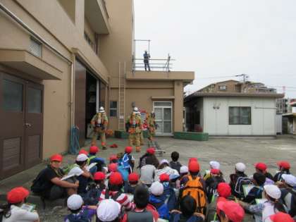 本日、八王子消防署北野出張所へ見学に行きました。そこでは、普段見ることのできない消防署内の見学や消防車の説明、防火着の体験までさせていただきました。最後には、消防署員による救助訓練の様子も見せていただきました。