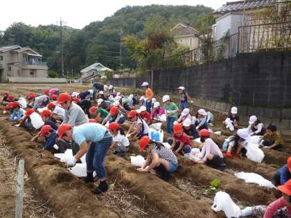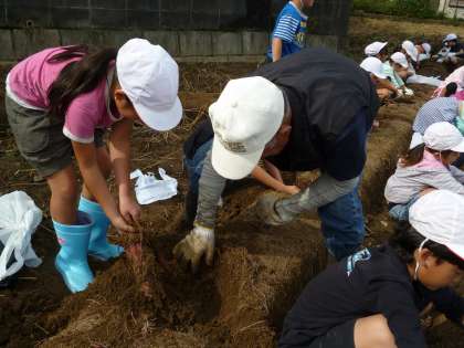 今日は、1校時から3校時に菱山修治さんの畑を借りて育てたさつまいもをほりに行きました。このいもは、今月の30日においもパーティーでおいしくいただきます。大量にとれました。ありがとうございました。