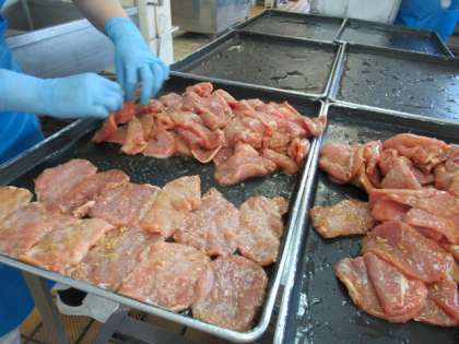 <赤色(主菜)> :ぶたのしょうがやきキャベツぞえ