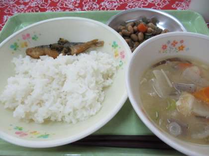 今日の給食では、『ごもくにまめ』をいただきます。