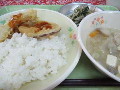 今日の給食は『こまつなのジャコあえ』をいただきました。