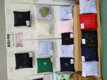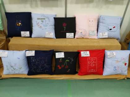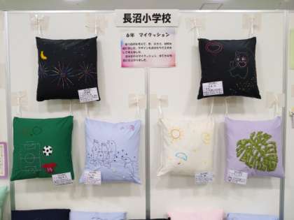 本校からは、図工と家庭科の作品が展示されています。小学生と中学生の力作がところ狭しと展示されている会場は、壮観でした。