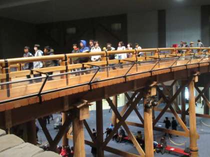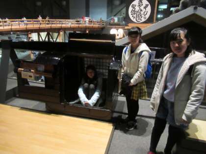 江戸東京博物館、中に入ると大きな橋を渡り、江戸の時代へ、一つ階を降りると昭和の時代になります。