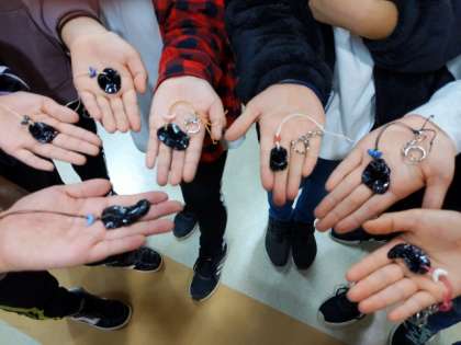 ひもを付けたらキーホルダーの出来上がり。