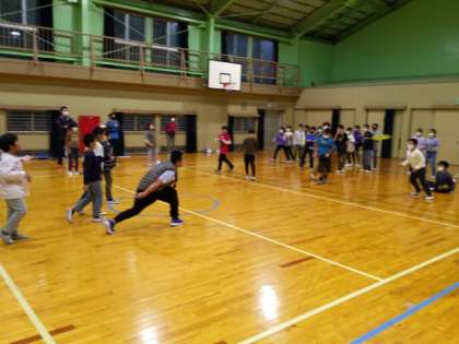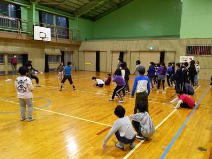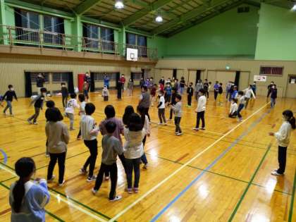 時間の余裕があったので、体育館でフリスビー王様ドッジボールをやりました。じっとしていると体育館は冷蔵庫のようです。子供たちは、元気です!