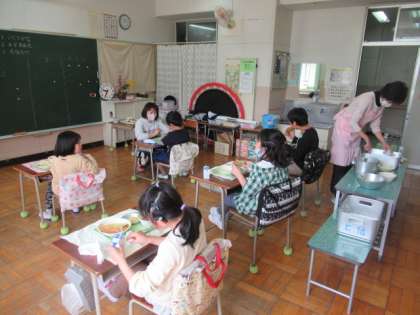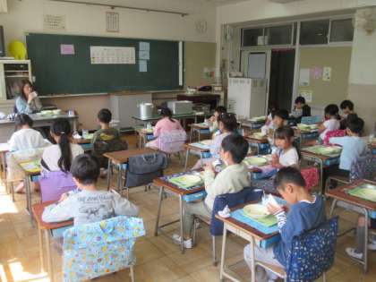 今日から、1年生の給食が始まりました。新型コロナウイルス感染症の影響で、黙って静かに食べていました。どんどん、小学校でやることが増えてきました。