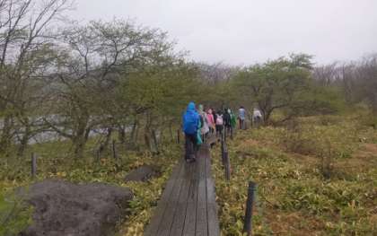 小雨の中のハイキングでしたが、無事みんな到着しました。お疲れさまでした。