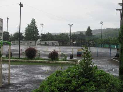 1年生はプールの準備をしていましたが残念ですが今日は、プールに入ることはできません。