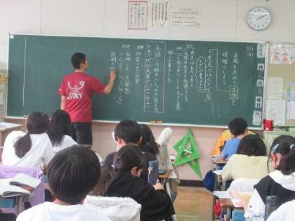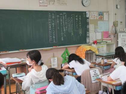 教員 「辞書で引いてみると、そんなに変わらない、けれども、主張は相手を納得させることです。」「納得してもらうための工夫は‥‥。」と授業が進んでいきました。