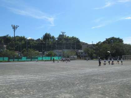 暑さ指数「厳重警戒レベル」なので、走っていない児童は、ステージの木陰で休むようにしました。また、水分補給をしながら運動をしました。