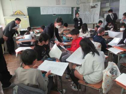 「書き込み本文ワークシート」をもとにクループの友達に自分の考えを発表しました。