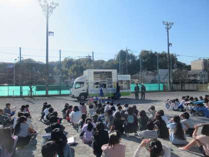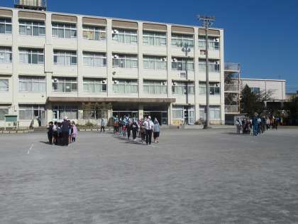 算数少人数で学習していた学年も、校庭に出てから素早く学級ごとに並んでいました。